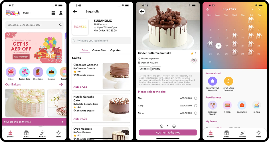 Forgot her birthday? Need to prepare for your anniversary? Or do you just want a little something when no one's watching? No need to orchestrate a celebration, we’re here to help! We’re a one-stop solution in Dubai to make all your celebrations fun and colorful. Shugah is a feature-rich react native app that automates delivery solutions to make your party planning simple, fun and special. Now Bakers… We know these days you guys don’t get the same chances as restaurants do with their tomato and kangaroo apps but that’s why we’re here! Now all you dough punchers get a chance to be out there!