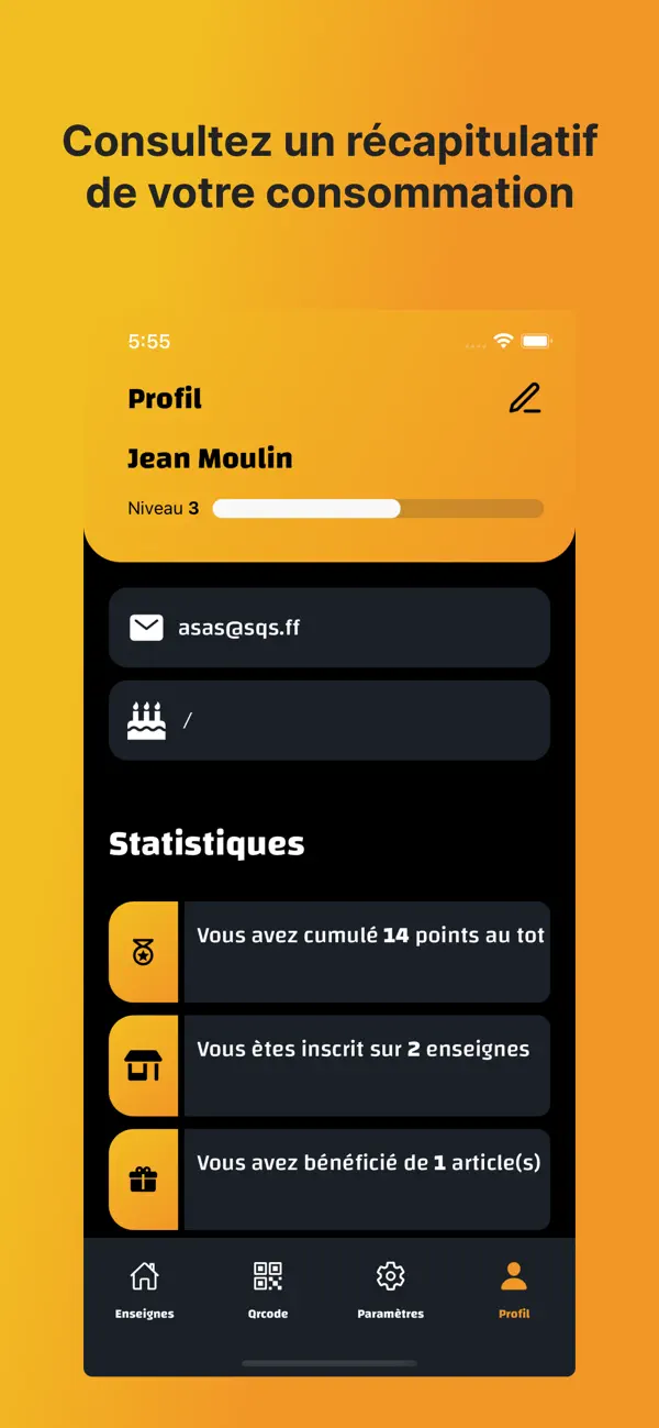 Découvrez une nouvelle ère de fidélisation client avec notre application de carte de fidélité dématérialisée. Boostez votre entreprise en offrant à vos clients des récompenses exclusives et des avantages exceptionnels. Notre solution de pointe simplifie la gestion de la fidélité, vous permettant de bâtir des relations solides avec votre clientèle et d'augmenter les ventes. Programme de Fidélité Révolutionnaire Offrez à vos clients une expérience inoubliable avec notre programme de fidélité novateur. Gagnez leur loyauté en récompensant chaque achat, chaque visite et chaque interaction. Notre système de points de fidélité numériques transforme les transactions en opportunités d'engagement, créant ainsi une clientèle fidèle et engagée. Récompenses Personnalisées Distinguez-vous en proposant des récompenses personnalisées adaptées aux préférences de chaque client. Notre application analyse les habitudes d'achat et les comportements pour recommander des offres spéciales, garantissant ainsi que chaque récompense soit pertinente et désirable. Offrez des réductions sur les articles préférés de vos clients et renforcez leur attachement à votre entreprise. Augmentation du Taux de Retour Notre application redéfinit la fidélisation en générant un retour sur investissement tangible. En fidélisant vos clients existants, vous réduisez les coûts liés à l'acquisition de nouveaux clients. Observez une augmentation spectaculaire du taux de retour, car chaque interaction avec votre entreprise devient une opportunité de récompenser et de ravir vos clients. Marketing de Fidélisation Éclairé Découvrez une nouvelle approche du marketing en ciblant vos offres et promotions. Notre application vous permet de créer des campagnes de marketing de fidélisation ciblées, augmentant ainsi l'impact de chaque communication. Proposez des remises exclusives aux clients fidèles et constatez comment votre base de clients s'élargit grâce au bouche-à-oreille positif. Gestion Intuitive et Simplifiée La gestion de votre programme de fidélité n'a jamais été aussi simple. Notre interface conviviale vous permet de suivre les performances de votre programme, de gérer les récompenses et de surveiller l'engagement des clients. Tout est à portée de main pour que vous puissiez vous concentrer sur ce que vous faites de mieux : offrir une expérience client exceptionnelle. Rejoignez la révolution de la fidélisation avec notre application de carte de fidélité dématérialisée. Faites croître votre clientèle, stimulez les ventes et créez des ambassadeurs pour votre marque. Téléchargez dès maintenant et découvrez comment transformer des clients en fans fidèles.